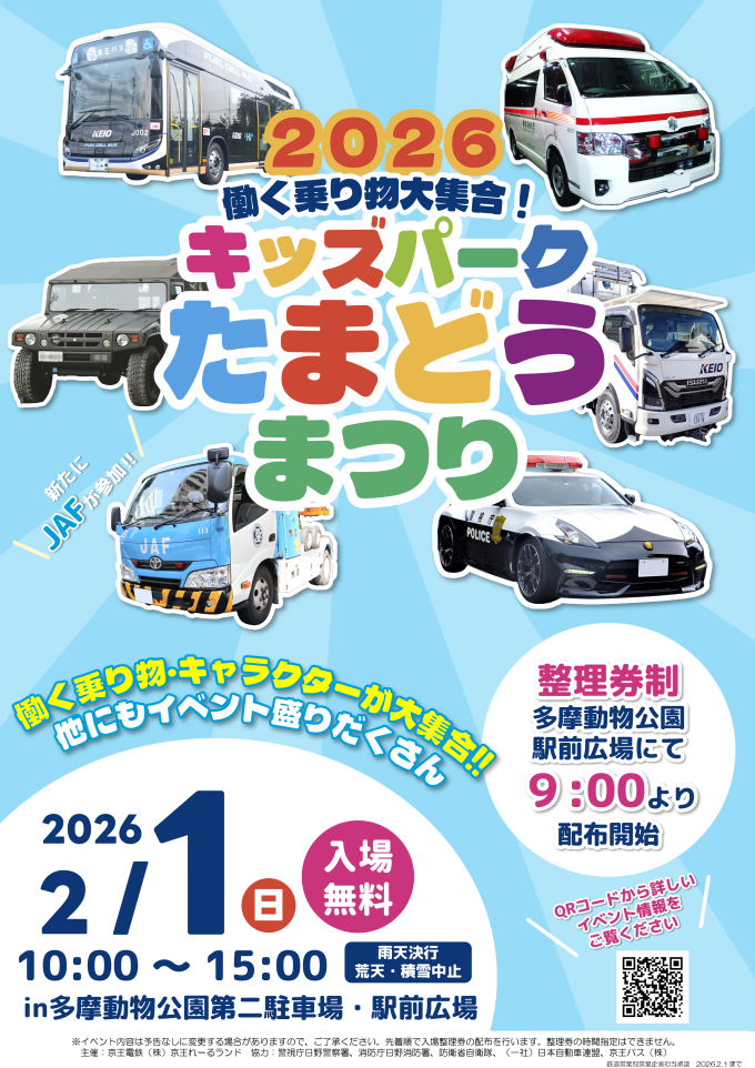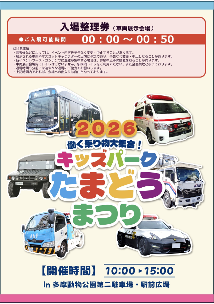 「働く乗り物大集合!キッズパークたまどう2026」入場整理券配布について