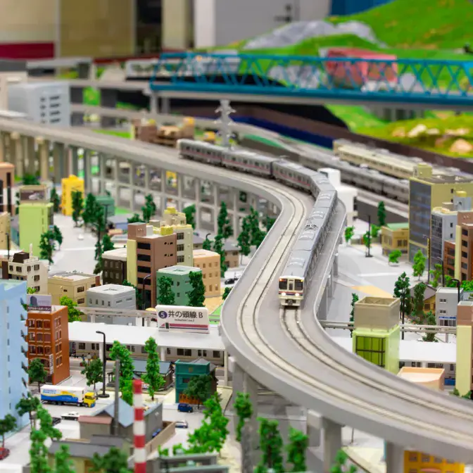 京王沿線を再現したジオラマで街並みを観察できるほか、本物のバスや京王線車両のカットモデルのハンドルなどを自由に触ることができ、楽しく鉄道やバスの仕組みを学ぶことができます。